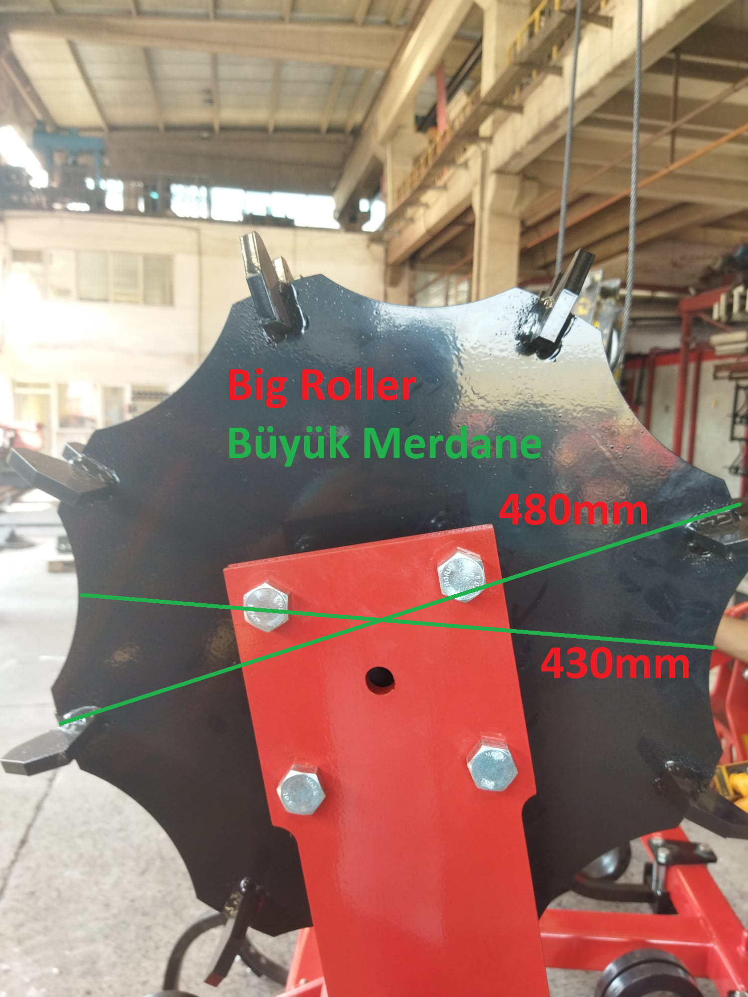 - Tiller isteğe bağlı olarak merdaneli üretilir.Büyük Merdane Çapları resim olarak verilmiştir.Merdaneler Mekanik ve Hidrolik kaldırmalı olarak opsiyonel üretilir.