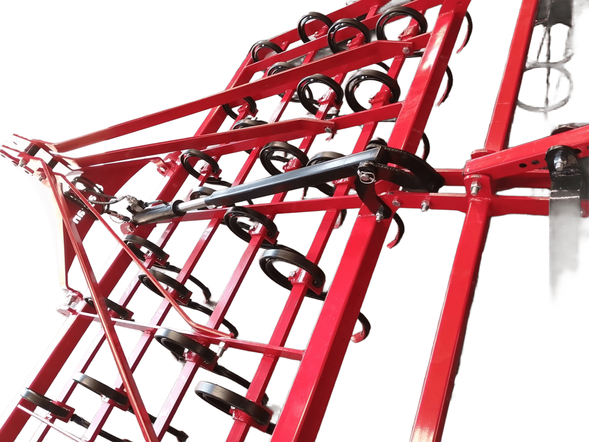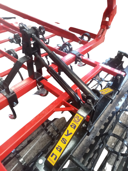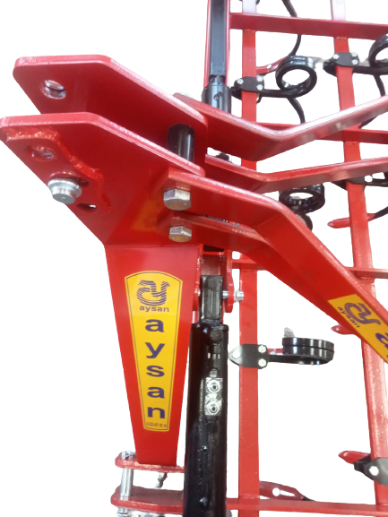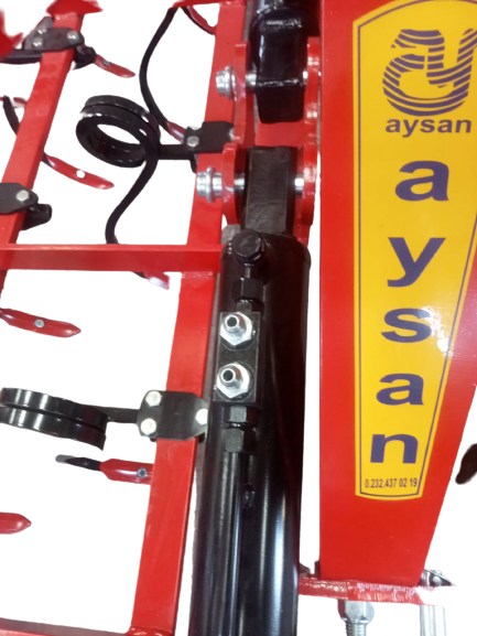 - Yan merdanelerin toprağa teması ve taşıma için kaldırılması için ortada büyük güçlü hidrolik piston bulunmaktadır.Bu piston gücünü traktörün hidrolik çıkışına bağlanarak alır.
